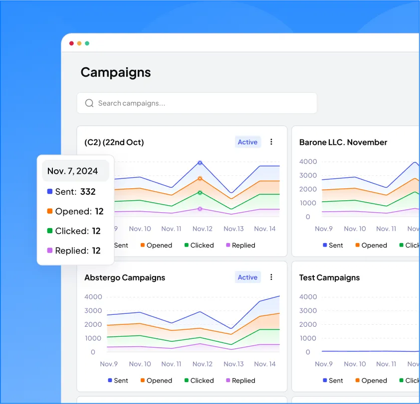 We use domain warmup, proper SPF/DKIM/DMARC setup, human-like sending patterns, verified contact data, and reputation monitoring. Our systems are optimized to maintain 95%+ inbox placement across all campaigns.